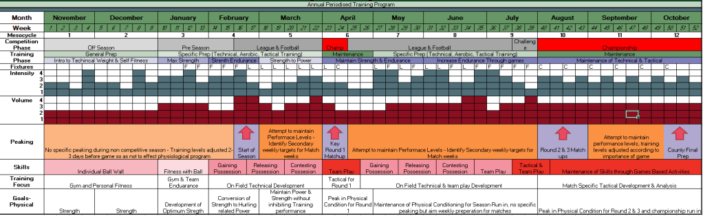 For Youth and Adult teams, i would definitely suggest checking out Deely Sport Science for season plans. Ciaran and his team have developed an unbelievable archive of information on this area, which should definitely be checked out by coaches working in the Young Adult and Adult sections. Website link here: https://elite.deelysportscience.com/